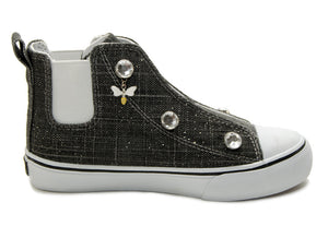 Create your own sparkle in this high top sneaker with cotton canvas upper and rubber sole. Twist on and off different embellishments to create a personalized look. Each pair of sneakers come with 1 set of "Em-be" accessories.