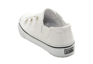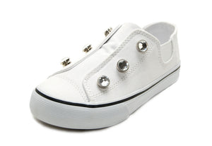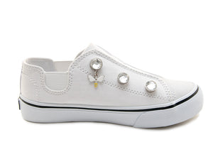Everyone's favorite easy to to slip on low top sneaker with cotton canvas upper and rubber sole come with 1 set of twist on and off embellishments.