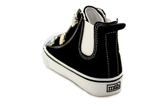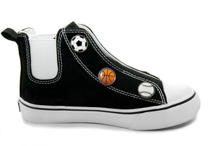 The perfect sporty high top sneaker with cotton canvas upper and rubber sole. Twist on and off different embellishments to create a personalized look. Each pair of sneakers come with 1 set of "Em-be" accessories.