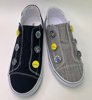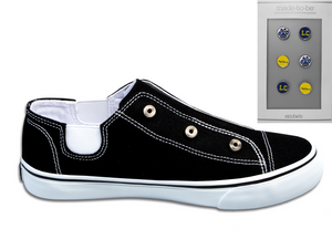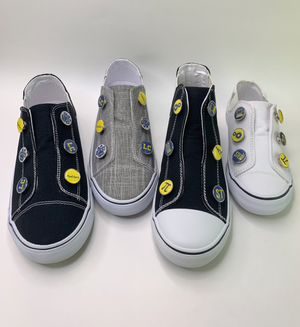 Everyone's favorite easy to to slip on low top sneaker with cotton canvas upper and rubber sole come with 1 set of twist on and off embellishments.