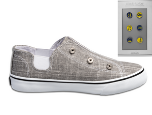 Everyone's favorite easy to to slip on low top sneaker with cotton canvas upper and rubber sole come with 1 set of twist on and off embellishments.