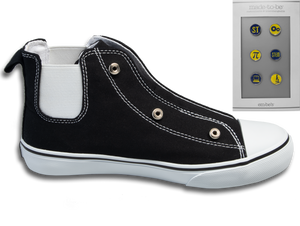 The perfect sporty high top sneaker with cotton canvas upper and rubber sole. Twist on and off different embellishments to create a personalized look. Each pair of sneakers come with 1 set of "Em-be" accessories.