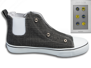 Get your edge on with this camouflage high top sneaker with cotton canvas upper and rubber sole. Twist on and off different embellishments to create a personalized look. Each pair of sneakers come with 1 set of "Em-be" accessories.