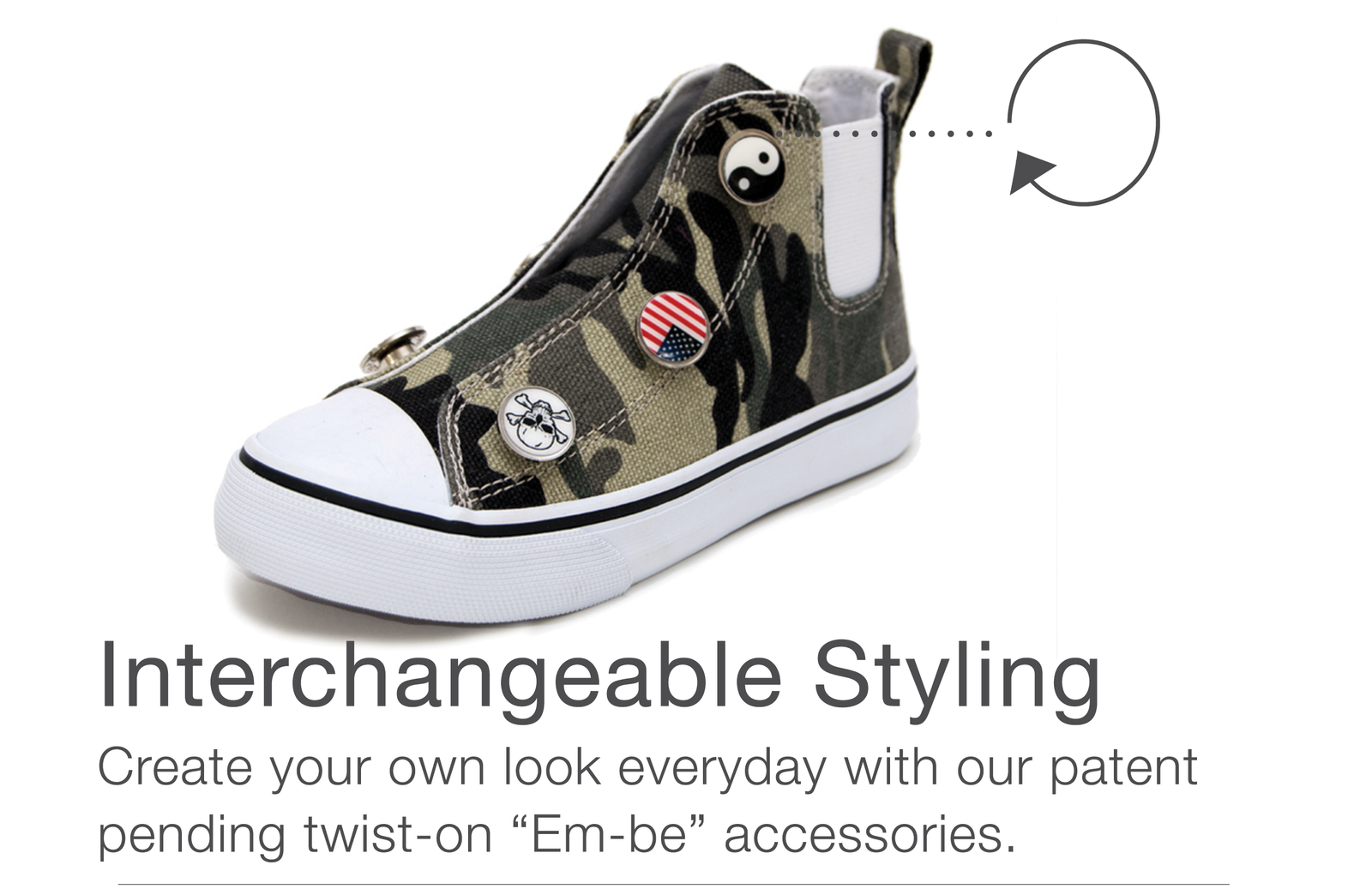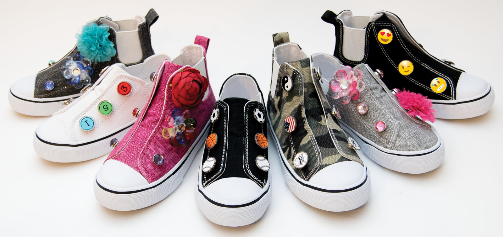 Everyone's favorite easy to to slip on sneaker with cotton canvas upper and rubber sole come with or w/out 1 set of twist-on & twist-off accessories.